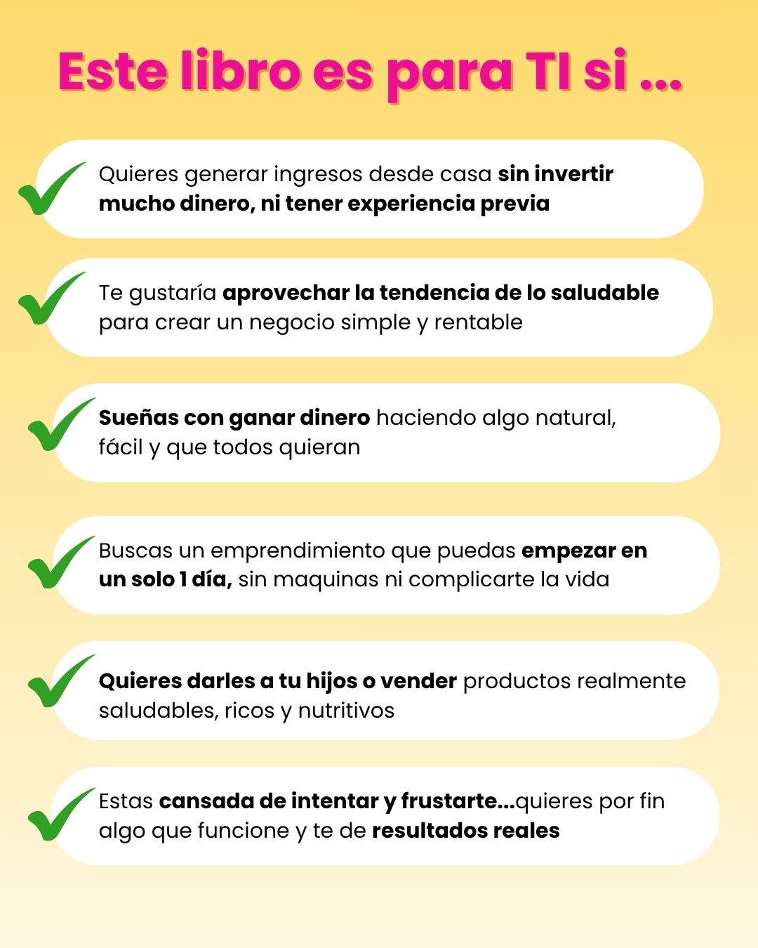 👉 Estoy tan segura de que este libro de 50 Recetas de Barritas Saludables va a ayudarte a crear y vender tus propias barritas, que quiero que lo pruebes sin riesgos.